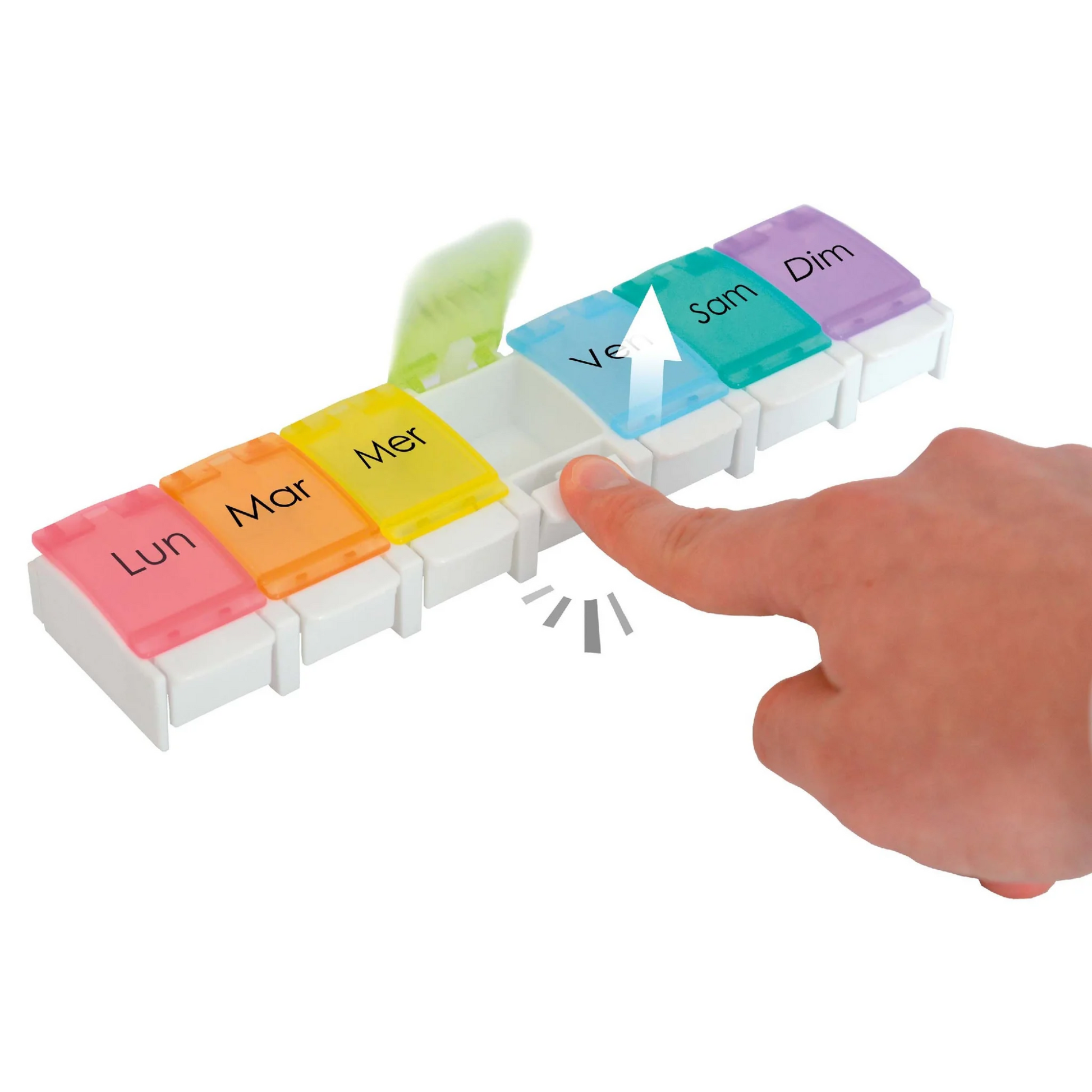 Pilulier hebdomadaire avec 1 compartiment par jour.