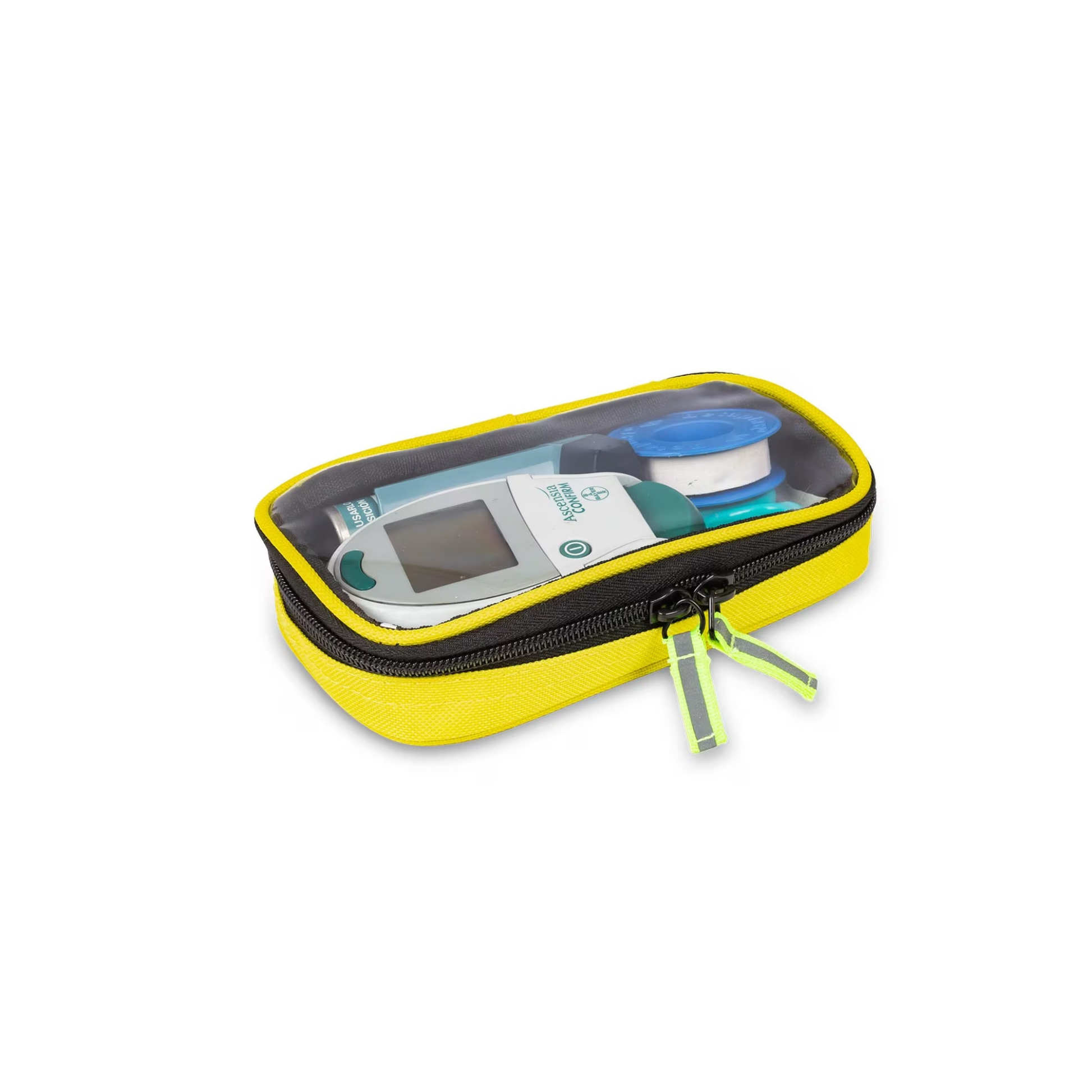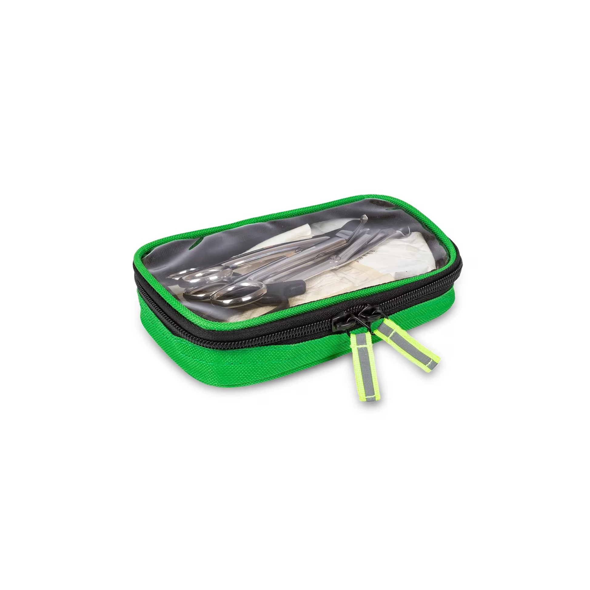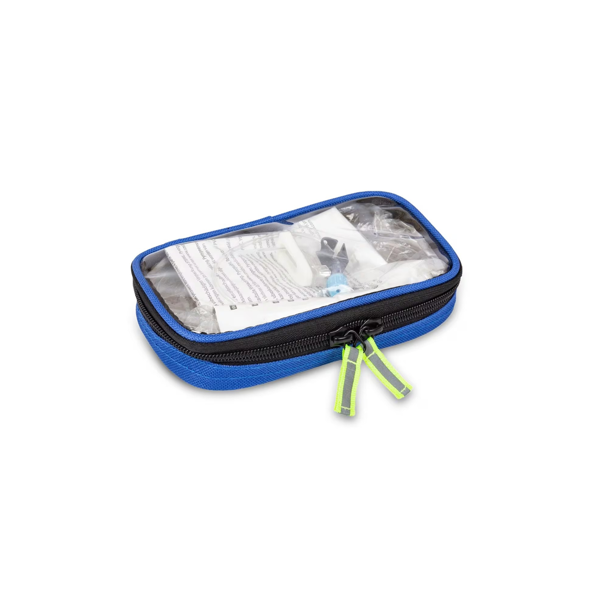 • 4 trousses transparentes avec fermetures éclair (code de couleur, bleu- respiratoire, rouge-circulatoire, vert-chirurgical et jaune-pédiatrique)